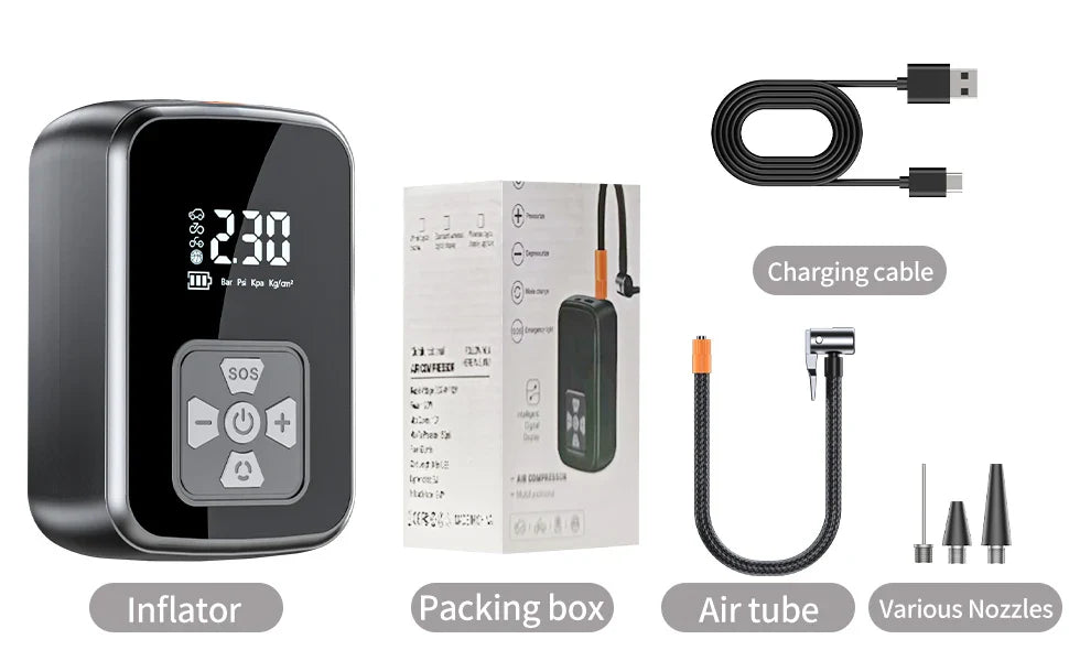 Keep your tires and gear ready wherever the road takes you. This compact, rechargeable air pump delivers powerful inflation without the hassle of cords or plugs. Designed for convenience, it’s the perfect companion for cars, motorcycles, boats, sports balls, and inflatable toys.
