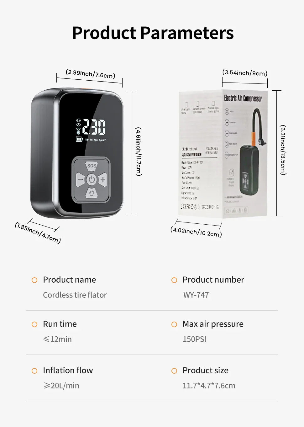- Fast Inflation: A 100W motor with up to 150psi quickly fills tires, saving time and effort.